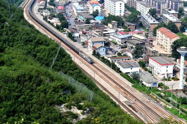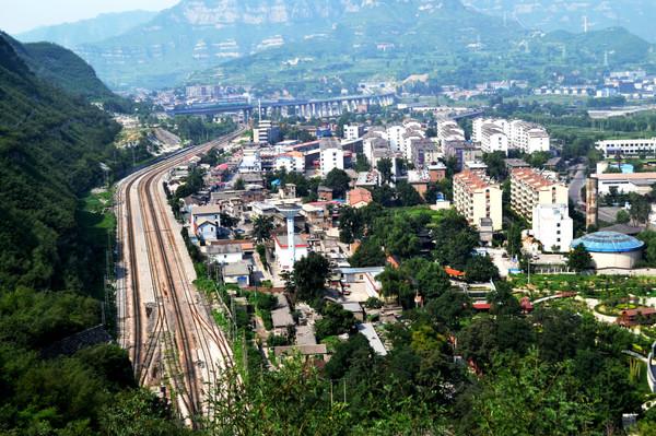 长城上俯视娘子关镇火车道